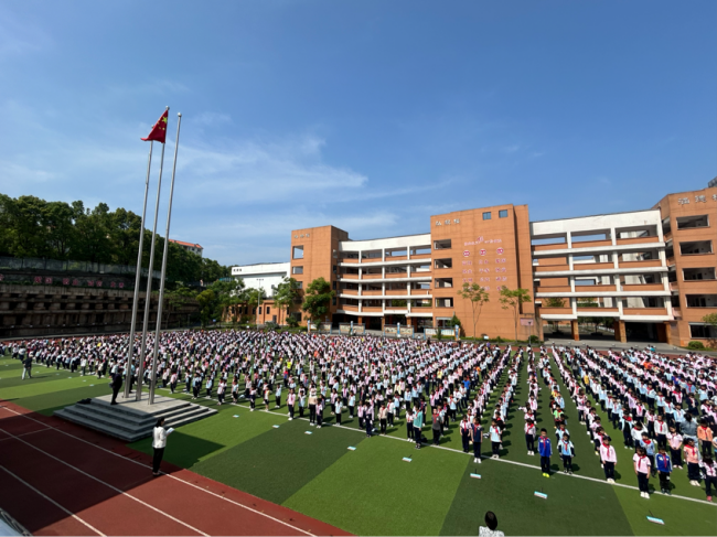 该校三至五年级师生利用大课间时间齐聚操场,在市关工委辅导员王兰云、周丽芹的带领下,大家声情并茂、铿锵有力地诵读着《大学》《论语》等经典篇章。朗朗书声展示了丁香少年朝气蓬勃的精神风貌,中华优秀传统文化在校园里焕发出新的时代生机。