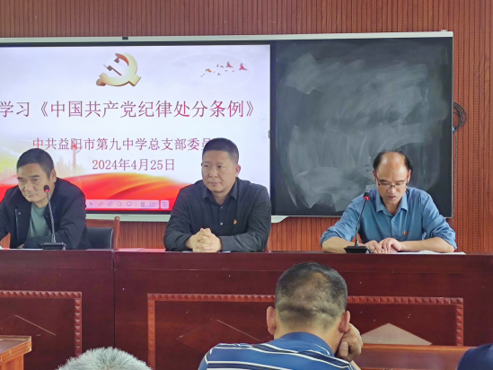 本网讯(通讯员 王素伟 戴庆)4月25日,中共益阳市第九中学总支部委员会在上级党组的安排下,开展党纪学习教育。