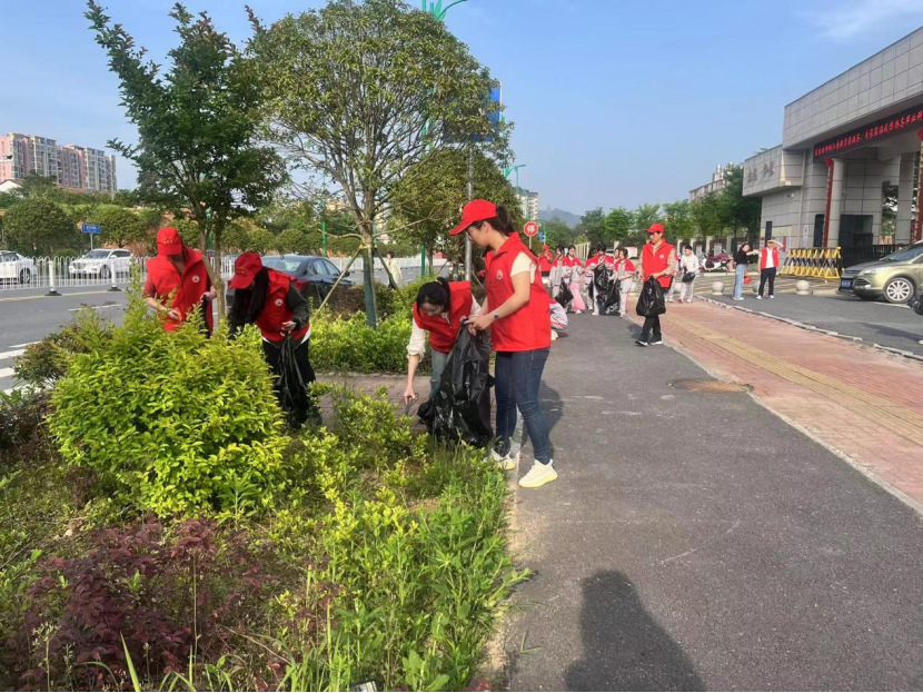 志愿者们手拿扫帚、簸箕、垃圾夹钳、垃圾袋等工具,来到金凤社区及学校周边马路、绿化带进行深度大扫除,不时街道两边那一抹抹鲜艳的红色,构成了一道道靓丽的风景线。经过志愿者们细致地清扫,社区街道、学校周边马路干净整洁、焕然一新,他们以实际行动践行志愿者精神,用辛勤劳动扮靓美丽家园。