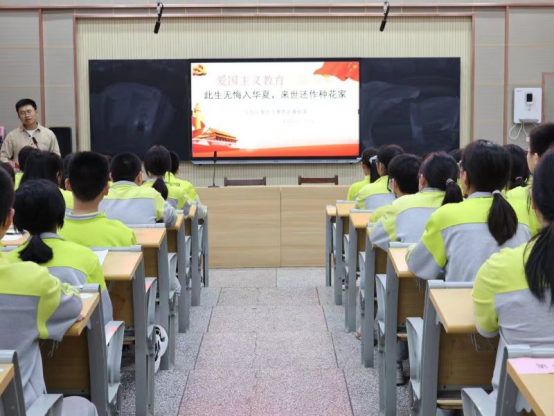 “啊,黄河!你是伟大坚强,像一个巨人,出现在……”铿锵有力而又恳切真诚的声音充满了整间教室,这是主题团课上学生深情朗诵的一幕。该校团委副书记充分结合习近平总书记重要寄语精神、拓展网络资源与课本资源,采用观看视频、畅谈感想、分享爱国故事、朗诵爱国诗词等多种授课形式,引导学生们回答了“爱国主义是什么?”“为什么要爱国?”“青年学子该如何爱国?”等三个核心问题。在寻找答案的过程中,爱国主义情怀悄然氤氲在每个青年学子心间。