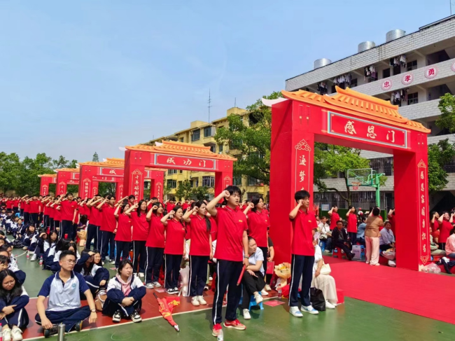 活动中,该校高二学生为学长学姐们献上合唱《祖国不会忘记》《彩虹》,高三优秀学生代表在演讲中表达了对“成人”的理解,以及对父母与师长的感恩之情。区教育团工委书记蔡建华为全体学生送上“永久奋斗,人生精彩”的美好祝愿。该校党总支书记曹腊生寄语学子放飞梦想,立大志;静下心来,做小事;专心致志,做长事。他强调,青年学子应当继承“五四”薪火,坚定梦想,担当责任,以昂扬斗志追逐青春梦想,无愧青春,不负时代。仪式期间,教师为高三学子佩戴礼帽,送上《宪法》手册和成人纪念卡,;学生手持《宪法》手册,面向国旗,举起右拳,喊出青春誓言,并在家长的陪同下、师长的注目下过“成人门”,走“成才路”,整个校园瞬间化为温情的海洋。