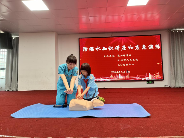 本网讯(通讯员 曾哲 陶慧明)5月8日,沅江市人民医院120急救中心的医护人员走进凌云塔校园,组织师生开展了应急救护知识进校园暨防溺水知识宣传讲座活动。