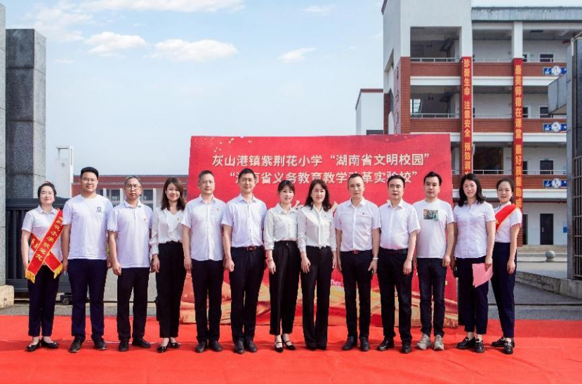 5月8日上午,桃江县紫荆花小学隆重举行了“湖南省文明校园”和“湖南省义务教育教学改革实验校”揭牌仪式。灰山港镇中心校领导、特邀嘉宾、少先队代表、鼓号队成员及教师代表共同见证了这一历史性时刻。