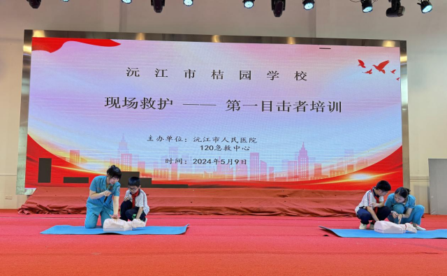 本网讯(通讯员 熊海文 李云)“大家要仔细看我的动作,胸部按压位置必须准确,力度也要到位……”5月9日上午,沅江市人民医院120急救中心医护团队走进桔园学校,组织在校师生开展防溺水知识宣讲暨现场救护——第一目击者培训活动。