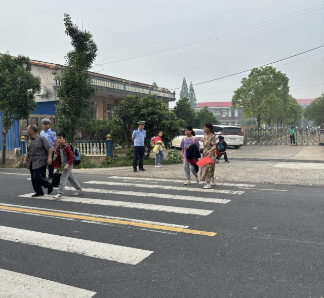 沅江市南大膳镇石剅小学交警坚守“护学岗”筑牢平安上学路