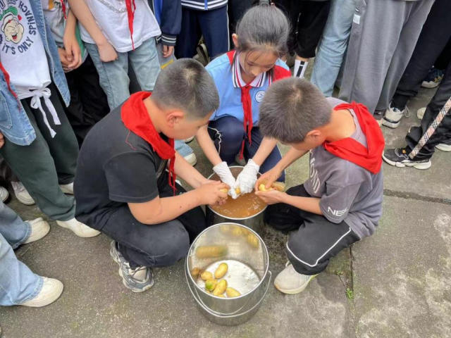 比赛现场,各班选派的三名同学组成参赛小组,他们手持工具,全神贯注地投入到洗土豆的任务中。只见他们或蹲或站,认真细致地清洗着每一个土豆,生怕遗漏任何一个角落。在比赛过程中,孩子们不仅展现了出色的劳动技能,更展现了坚韧不拔的毅力和团队精神。