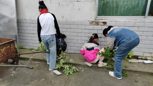 沅江市漉湖学校开展“夏风又绿园间草,劳动除草正值时”校园拔草活动