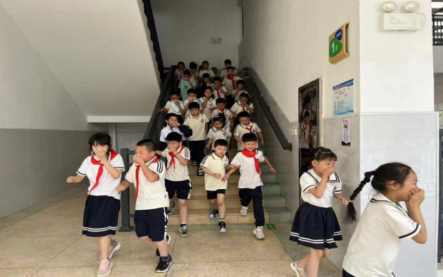 随着一声急促的火灾警报声响起,紧张而有序的疏散演习拉开了序幕。按照应急演练方案,指挥人员、班主任、后勤人员等迅速到位,学生在老师们的有序指挥下,用湿毛巾捂住口鼻,分两队从前后门出教室,屈身靠墙快速撤离至操场安全区域。在疏散途中,孩子们行动迅速,不慌不乱,安全有序。