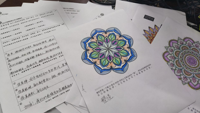 在心理团辅活动中,学生们通过参与热身游戏、肯定练习室、优点轰炸、感恩的心等有趣的心育活动,学会了合作、沟通、引导以及规避风险等技能。此外,学校还组织开展了《我的家庭动物园》《曼陀罗希望之花》等心理绘画活动,学生们在绘画中表达自己的情感和思想,进一步增强了自我认知和情感表达能力。