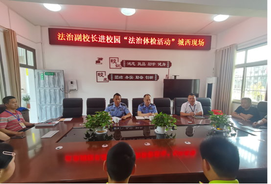 5月15日南县城西中学法治副校长唐新和李灿走进校园,参加南县城西中学“法治体检活动”,专项调研该校法治建设以及教师一岗双责制度落实工作。