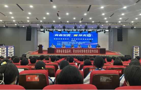 在第37个国际禁毒日即将到来之际,5月22日,益阳市禁毒巡回宣讲团走进南县职业中等专业学校,为师生们带来一场主题为“青春至美、湘伴无毒”的禁毒宣讲。益阳市强制隔离戒毒所副所长蔡庆杨,益阳市强制隔离戒毒所教育科副科长朱春飞,南县禁毒协会会长李瑞宏及学校600余名师生参加。