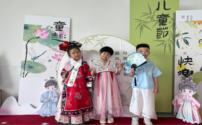 活动中,幼儿园所有小朋友身着汉服,男孩子顿时变身为青衣儒衫的意气书生,女孩子幻化成流苏襦裙的大家闺秀,一个个粉嫩的脸庞,仿佛从画中走出的孩童。舞台上,大家争相展示着汉服之美和中国传统礼仪文化的魅力,为所有师生上演了一场“穿越时空”的精彩大秀。