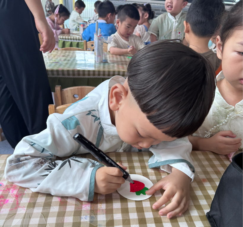 桃花江镇第一中心幼儿园举行庆六一系列活动之一——着汉服 制书签
