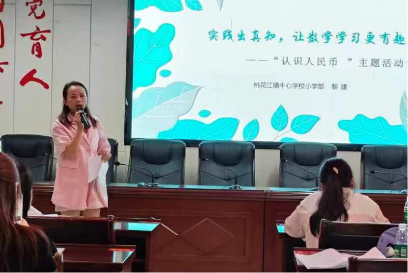 下午,来自桃花江镇中心学校小学部的黎建老师以“实践出真知,让数学学习更有趣”为题,分享了她在班级开展“认识人民币”主题活动的经验,她的分享是主题活动开展的优秀示范,很接地气,学员深受启发。