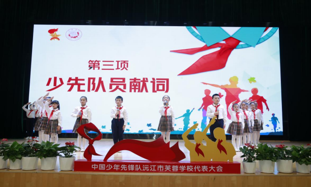 本次活动在队员们嘹亮的《中国少年先锋队队歌》中拉开帷幕。少先队员们欢聚一堂,为与会嘉宾们系上了鲜艳的红领巾。随后,张朝晖校长热情致辞,向大会的召开表示热烈的祝贺!她强调:全体少先队员应紧跟党的步伐,勇往直前,担当起时代赋予的重任。坚定理想信念,培养高尚品格,练就过硬本领,勇于创新创造,锤炼优良品格,努力成为社会主义事业的合格接班人。紧接着,新一届的少先队大队委员们进行了庄严的就职宣誓。他们承诺将做好领头雁、火车头的工作,尽职尽责、公正无私地为少先队事业服务,为队员们谋福利,为少先队事业贡献自己的力量。各社团为庆祝少代会的召开表演了丰富多彩的节目,奉献了一场视听盛宴。最后,活动表彰了“十佳少先队员”“十佳班主任”和“苇星家长”,现场掌声和欢呼声不断。