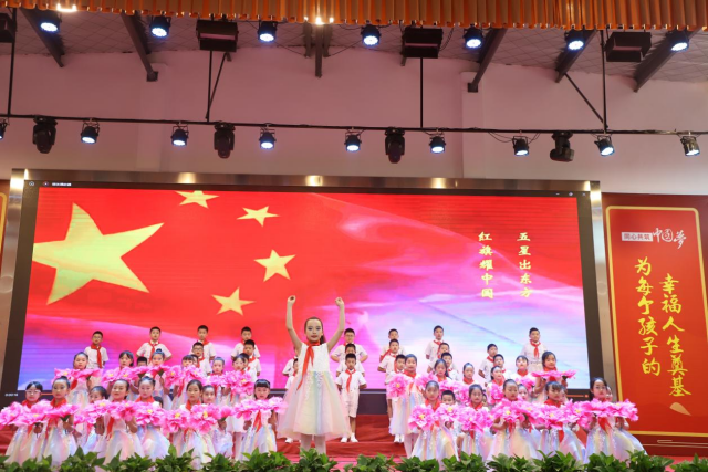 移步礼堂,文艺汇演与表彰颁奖交替进行。2204班孩子带来的舞蹈串烧《悠悠国韵 舞之国风》用精美的服化道搭配稚嫩的声音和动作,让中华传统文化燃动全场;情景朗诵《童说节气》用诗意的语言,引领在场观众领略中华节气文化的独特蕴味;歌舞表演类节目《少年志》《把未来点亮》《祖国有我》用真挚的情感和生动的语言,扬起了我们的民族自豪感,表达了对祖国的热爱和祝福,满满的正能量。此外活动现场对荣获2023-2024年度校级新时代“五星少年”荣誉称号的235名学生进行的表彰颁奖,更是激发了全校学生向榜样看齐的动力,形成人人争做新时代好少年的良好氛围。