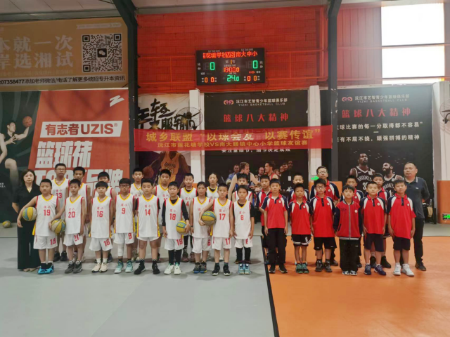 本网讯 (通讯员 罗卫军 谭志辉)为丰富校园文化生活,增强集体荣誉感和团队凝聚力,展现学生勇于拼搏和积极向上的精神风貌,5月31日,莲花塘学校与南大膳镇中心小学举办篮球联谊赛。