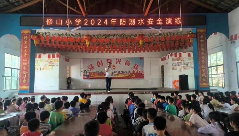 (通讯员:李孟诗)为了增强同学们的防溺水安全意识,提高自救能力,近日,桃江县修山镇修山小学党支部成功开展了一场生动而有意义的防溺水安全教育演练活动。