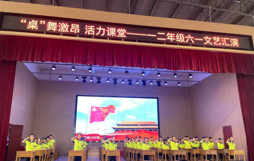5月29日,一、二年级举行了课桌舞比赛,随着音乐声响起,孩子们稚嫩的童声顿时回响在校园,他们动作整齐,用丰富的语言和表情表达着对祖国妈妈的热爱。