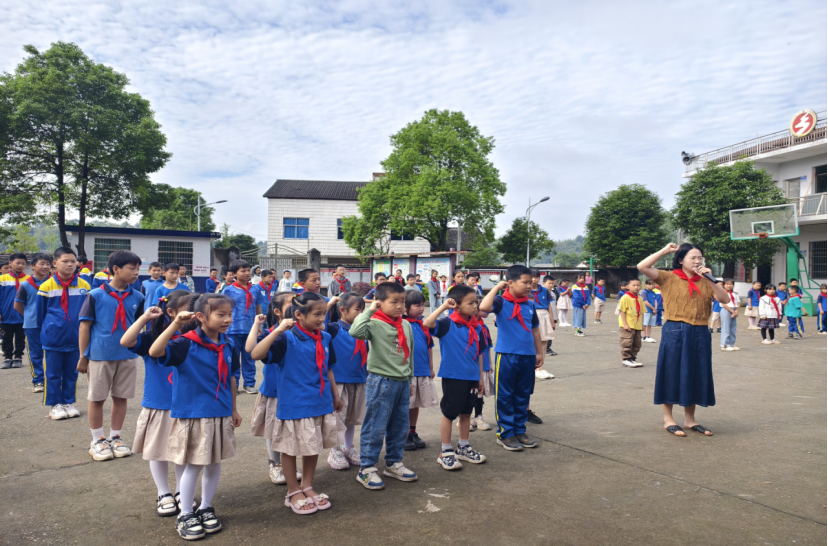 “我们是共产主义接班人……“,随着少先队队歌的响起,五羊坪小学操场上入队仪式开始了,新队员戴上了鲜艳的红领巾,举起右手在队旗下庄严宣誓。“少年强则国强,少年富则国富……”。入队仪式结束后,以班为单位,组织起了朗诵比赛,趣味运动会,跳绳比赛,游园活动,尽管没有华丽的舞台,但孩子们欢乐之心 “童”样精彩。