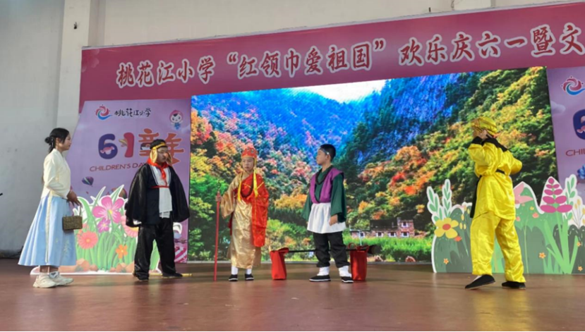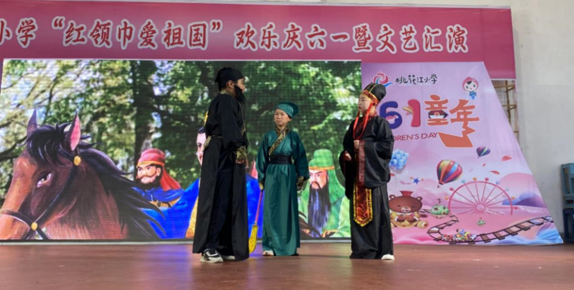 5月31日下午,在桃花江小学的礼堂里,“诸葛亮”来了,“司马昭”来了,“周瑜”来了;“武松”来了,“杨志”来了,“无用”来了;“唐僧”来了,“白骨精”来了,“孙悟空”来了……小演员们身着表演服,按捺不住内心的兴奋与喜悦。“悦享经典 童心飞扬”庆六一故事剧展演活动正在举行。