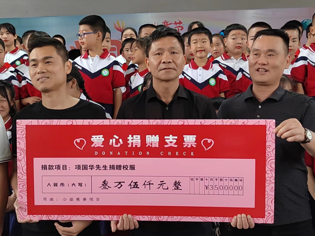 本网讯(通讯员 郭妍)在六一国际儿童节到来之际,5月31日上午,爱心企业项国华先生为华田学校学生每人捐赠两套爱心校服价值三万余元,暖意入心,“衣”路同行。全校师生在大礼堂热烈欢迎爱心企业的到来,并举行了隆重的校服捐赠仪式。