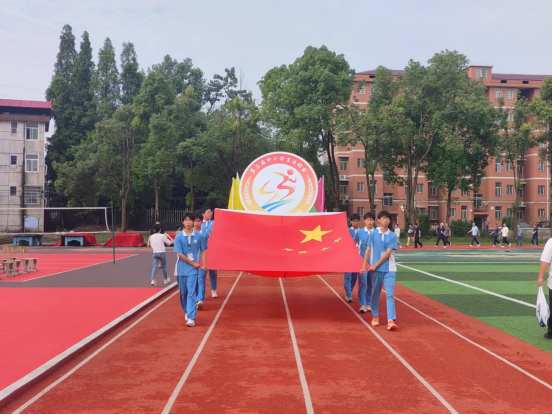 开幕式上,彩旗飘扬,鼓号齐鸣,气势如虹。护旗手、护徽手昂首挺胸迈着矫健的步伐,正步走向主席台;各代表队精神抖擞喊着嘹亮的口号,在《运动员进行曲》中展现着运动的活力和参赛的热情。