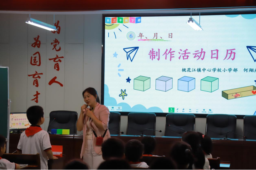 活动中,丁望名师工作室核心成员、桃花江镇中心学校小学部教师何翔燕执教展示课《制作活动日历》,“同学们,2024年的日历2025年能用吗?”“能不能制作永不过期的日历呢?”上课伊始,教师抛出两个有思维含量的数学问题,吸引学生的注意力,让学生明白制作活动日历的必要性。
