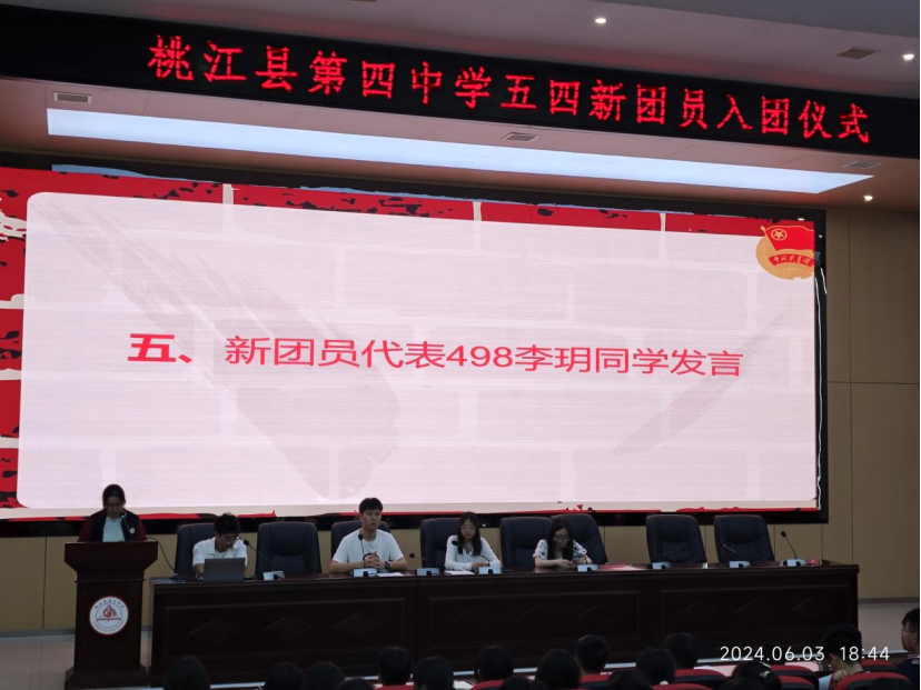 (通讯员:胡靓姿、卢元明)2024年6月3日,桃江县第四中学举行了新团员入团仪式。此次仪式不仅是新团员们的一次庄严宣誓,更是他们青春力量的一次有力地彰显。