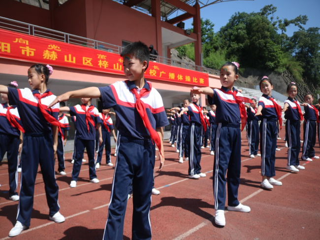 湖南城市学院附属梓山湖学校举行“童心向党 茁壮成长”广播体操比赛