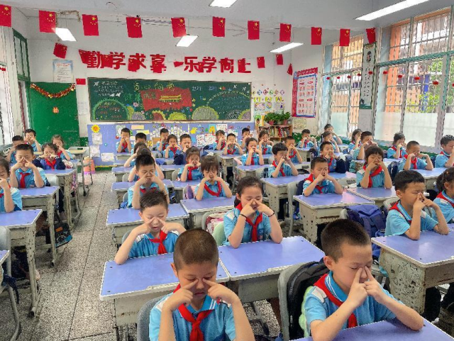 学校通过国旗下讲话、班会活动等方式开展爱眼小课堂,老师为孩子们讲解了健康用眼的知识和保护视力的办法,最后给了一些爱眼小方法,建议学生们在日常生活中应用。学校近期还将分年级组织进行眼保健操比赛,旨在教育学生要从小养成保护视力、爱护眼睛的好习惯。