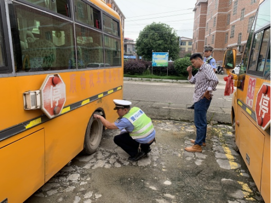 为进一步强化校车安全管理,确保学生上下学安全,6月5日,南县交警二中队张欢警官一行深入厂窖镇中心学校,对该校所拥有的11辆校车进行了细致全面的可视性隐患排查体检。