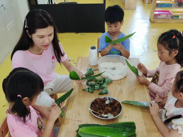 在包粽子活动之前,老师们通过讲述绘本故事、欣赏节日图片、观看相关视频,让幼儿了解了端午节的习俗和由来,激发了他们对传统文化的热爱和民族自豪感;通过讲述伟大爱国诗人屈原的故事,进一步厚植了幼儿的爱国主义情感。