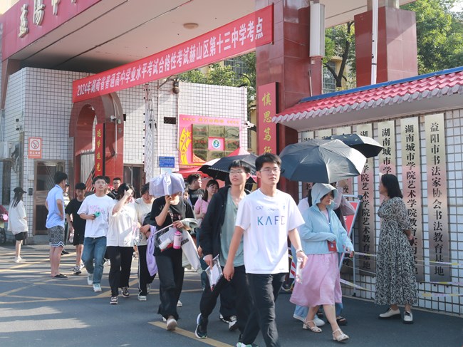 6月12日,湖南省2024年普通高中学业水平合格性考试开考。赫山区报名人数11227人,共设3个考点、377间考室,考务工作人员近千人。截至下午5时,各考点组考工作严密,考场秩序良好,学考首日平稳顺利。