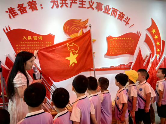 活动当天,孩子们身穿园服,精神抖擞,在老师们的带领下参加了小学的升旗仪式,他们和哥哥姐姐们一起注视着五星红旗冉冉升起,向国旗致敬。