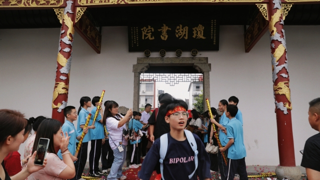 本网讯(通讯员 刘静林 唐大红)“仔细读题”“沉着冷静,不要紧张”“相信自己可以的”……初三年级班主任和科任老师身着象征旗开得胜的红色战袍,为琼湖书院的毕业班学子呐喊助威!6月18日上午7时40分,琼湖书院党总支书记、校长刘益华携全体行政及全体毕业班老师聚集在教学楼下,为即将奔赴考场的毕业班学子们隆重举行中考送考仪式。