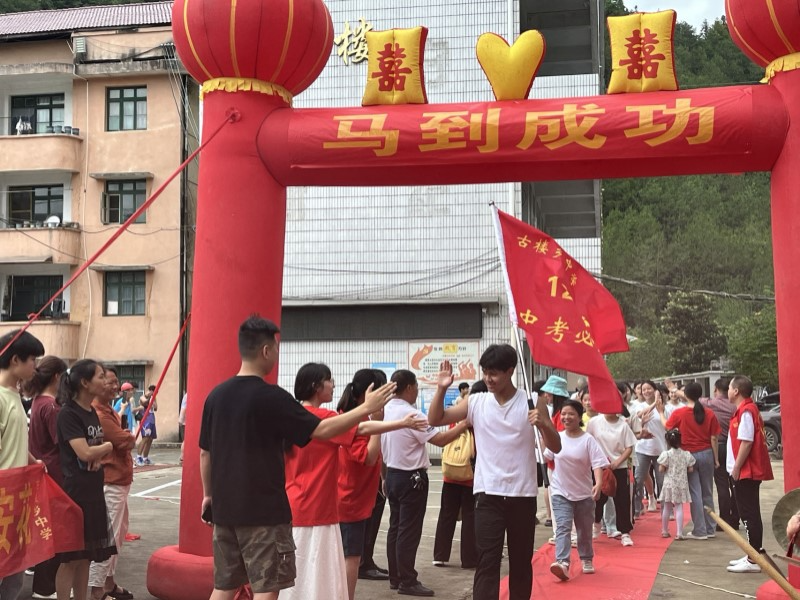 本网讯 6月17日,古楼乡中学举行2024年中考出征仪式,全校师生及九年级家长齐聚校园,为该校初三学子送考。 此次活动在庄严的升旗仪式中拉开序幕。 出征伊始,该校校长刘竟伟为中考出征仪式致辞,他对全体初三学子这三年来所付出的努力表示欣慰与肯定,激励同学们应保持饱满的热情,认真做事的态度,在考场上保持平和冷静的心态,发挥最佳水平,迈向更广阔的未来。九年级教师代表刘思艺用所教科目的学科知识为即将出征的学子们送上祝福:“分封制、郡县制、行省制,同学们均可遂青云之志;古代史、近代史、现代史,创造中考新历史!”接着,初三学生代表吴昕薇作表态发言,她表示:“我们定将全力以赴,不负父母期盼,不负老师教诲,不负青春年华。”发言结束后,由123班夏宝龙带领全体初三学子进行中考宣誓。 出征在即,古楼乡党委副书记李贤文、中心学校校长尹立芳以及该校校长刘竟伟为初三学子授予中考出征大旗。 授旗仪式结束后,尹立芳下达出征命令,宣布:“出征!”全体初三学子整齐列队,各班代表高扬出征旗,在班主任的带领下,同学们意气风发地踏上象征成功与希望的红地毯,穿过“成功门”。全体初三教师及学校、政府领导排列在成功门两侧,为他们击掌助威,学弟学妹们高举中考横幅为他们加油呐喊,在大家的祝福声中,同学们走出校门,踏上中考的征程,奔向星辰大海,走向未来! 初审初校:孙薇 复审复校:张勇 终审终校:刘竟伟