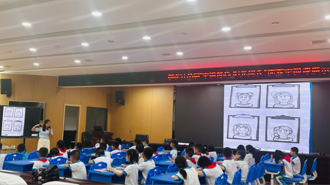 紧接着,李云珍老师通过《表达情绪》一课,引导一年级学生探索情感世界的多样性。通过故事讲解、互动讨论及情感卡片等工具,李老师帮助小小年纪的学生认识并表达自己的情绪,这一技能对于他们的人际交往和心理健康至关重要。