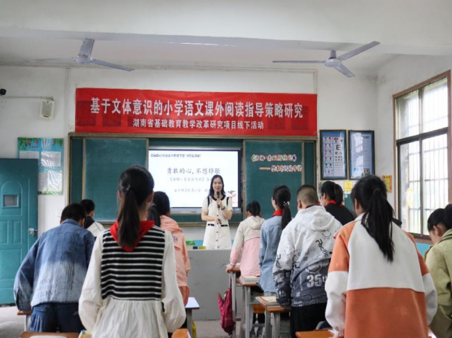 张益小学语文学科工作室成员围绕小学语文课外阅读指导策略研究进行送教,欧瑞梅、刘益兰、赵妮分别执教《汤姆·索亚历险记》导读课、《骑鹅旅行记》推进课、《中国古代寓言故事》分享课,利用多种方式激发学生阅读兴趣,引导学生深入了解书本内容。随后,分别来自沙港学校、小河口学校、兰洲学校的教师李小军、杨佩、张永霞上研讨课,其他教师进行了评课。