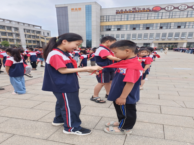 为进一步增强学校少先队组织力量,引导学生继承和发扬中国少年先锋队光荣传统,5月27日上午,赫山区沧水铺镇花亭子学校举行了主题为“红领巾爱祖国”的新队员入队仪式。