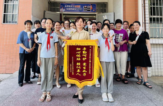 本网讯(通讯员 黄贝 罗佳)凤凰花开,骊歌响起,6月30日,沅江玉潭学校毕业学子感恩活动正温情上演。一群在校生活学习了六年的小学毕业生自发组织,向暖心照顾陪伴他们的食堂工友、生活老师等后勤职工献上锦旗与鲜花,表达诚挚的感谢之情。