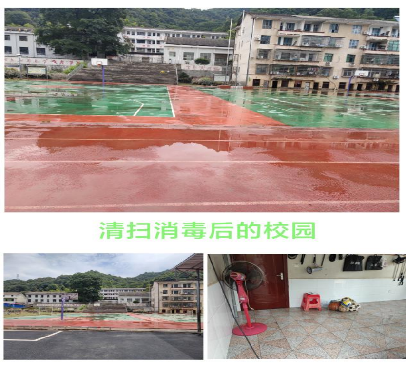 “洪水无情人有情。”“人心齐,泰山移。”老师们经过大半天时间,把受灾的校园清扫得干干净净,全面消毒更是一个角落也不放过。校园焕然一新,重新焕发出勃勃生机。