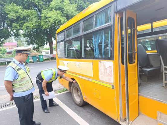 检查组认真查看校车发动机、管道、刹车、校车标志灯、灯光、停车指示标志等硬件是否正常运行,随后对校车的座位安全带、安全锤、灭火器等安全设备进行了细致的检查,并将排查过程中发现的问题及时反馈,要求立即整改,及时消除安全隐患。