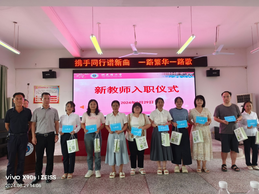 学校负责人说,为新教师举行入职仪式,给新教师传递一份被重视的信息,让我们的老师迅速认识了他们,从而尽快融入新集体,促进学校开学工作顺利开展。