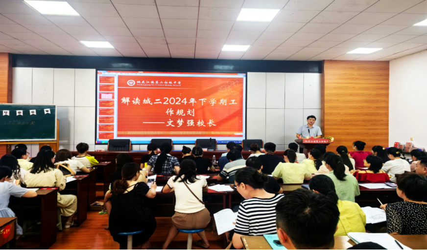 校长文梦强以“思想合心创佳绩,工作合力谋发展,行动合拍上台阶””为纲,明确学校秋季学期工作重点:确立思想,谋划学校新发展;明确目标,实现学校新飞跃;制定措施,开创学校新局面。他指出在制定工作计划时,学校管理者与教师应避免“假”、“大”、“空”和“全”。他强调新的一学年以党的二十大精神为引领,聚焦立德树人,深化教学改革,强化师资建设,提升教学质量,全面优化管理,致力打造人民满意的教育品牌。