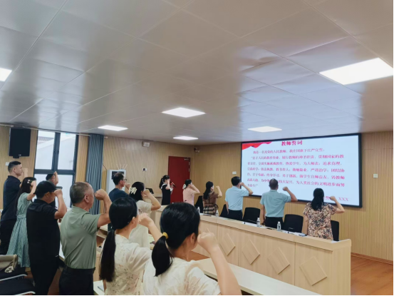 开班仪式上,全体教职工齐唱国歌,庄严宣誓。学校党总支书记、校长钟国滨作师德师风建设专题辅导报告,他强调了师德师风建设的重要性和紧迫性,指出教师不仅是知识的传播者,更是学生品德的塑造者,要时刻牢记自己的职责和使命,着力提升教师专业水平,涵养高尚师德,追求师德“高线”,坚守职业“底线”,严防行为“红线”。