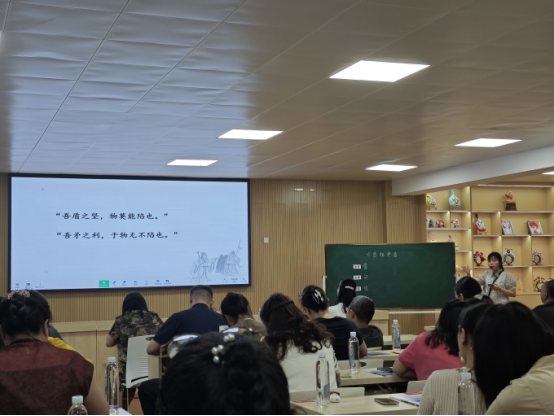 本网讯(通讯员 郭智敏)“同学们,现在我们想象自己来到了楚国的集市上,瞧,集市上人来人往,熙熙攘攘,谁能加上吆喝,把这些矛和盾推销出去?盾莫能陷,矛无不陷,作为卖家多么自豪呀,谁来再夸一夸自己的矛与盾?……”8月30日,为全面提升教师队伍的专业素养,益阳市石码头小学利用开学初的时间,全员开展“苦练‘内功'强本领,锤炼‘精兵'见实效”的精品课交流分享活动。