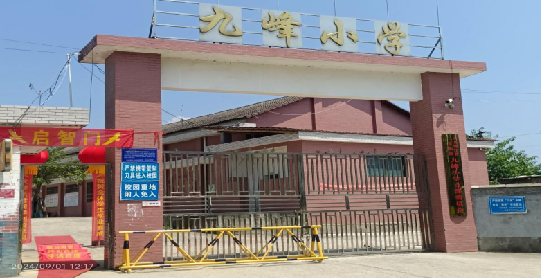 上午8时,阳光明媚,九峰小学的校门口热闹非凡。家长们带着孩子,满怀期待地走进校园。校门口的启智门格外引人注目,寓意着学生们将在这里开启智慧的大门,迈向成长的新征程。