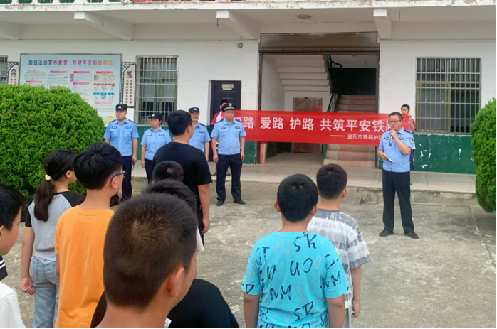益阳铁路派出所邓警官用通俗易懂的语言向学生们讲解了铁路安全知识,通过丰富的案例分享,引导和教育同学们不要在铁路沿线行走玩耍、不跨越警戒线、不攀爬列车、不做损坏铁路设施设备等不安全行为。