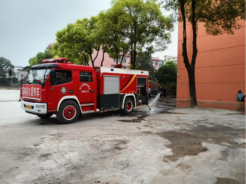义务清洗校园 营造干净环境——灰山港镇消防队帮助校园清污